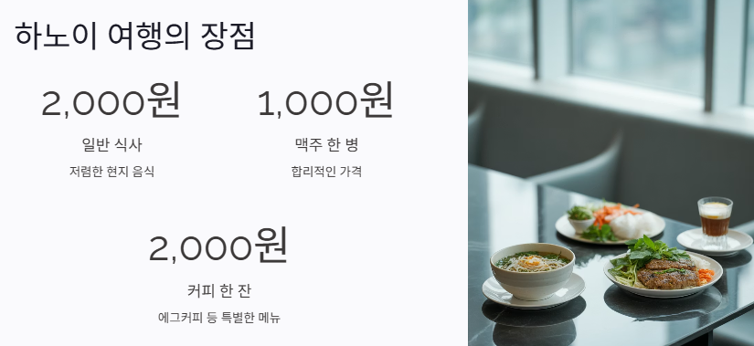 하노이는 ‘가성비 좋은 도시형 여행’을 원하는 분들에겐 딱 좋은 도시입니다.